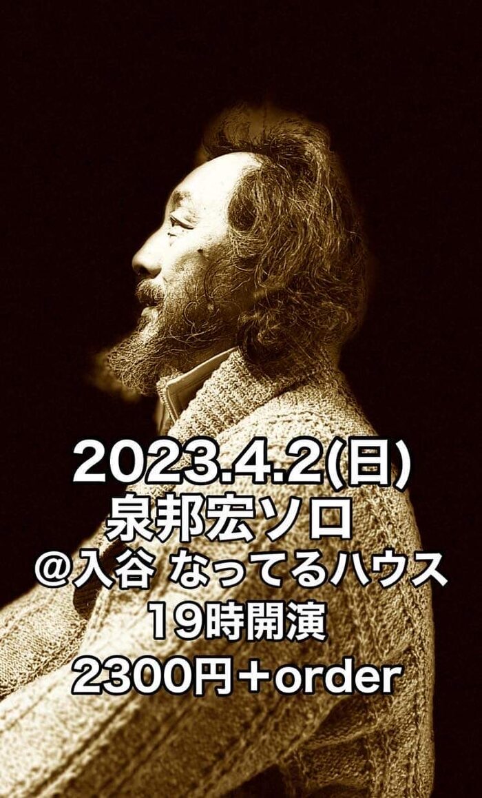 Sunday, Apr 02, 2023 open 18:30 start 19:00 ¥2,300 泉邦宏(sax,vo,g,etc) SOLO ひとりの人間がやれる限界に迫る進化し続けるワンマンDUBオーケストラ。各種CD、会場で絶賛販売中!(小)