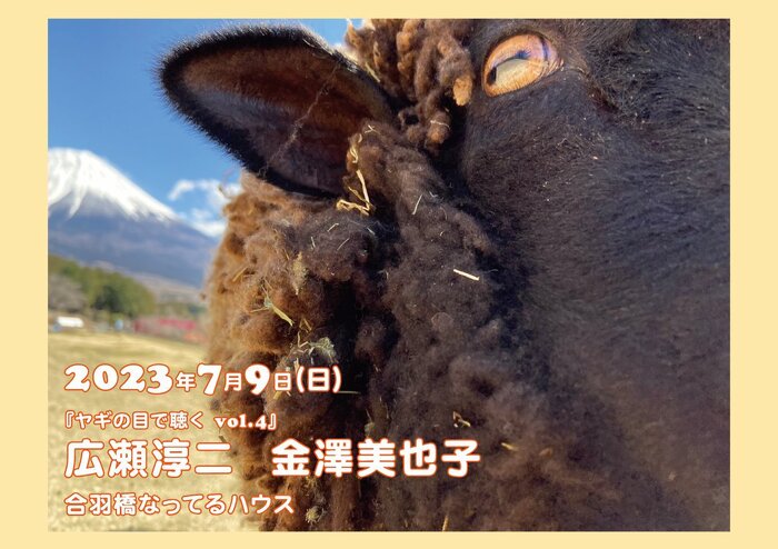 Sunday, Jul 09, 2023 open 18:30 start 19:00 ¥2,300 「ヤギの目で聴く vol.4」広瀬淳二(sax) + 金澤美也子(p) ヤンテラさん企画の新しいシリーズ。広瀬さんと金澤さんというこれまた不思議な組み合わせ。どーなるでしょう。(小)