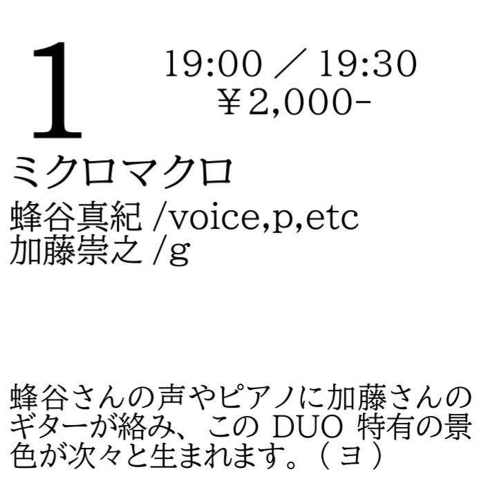 ミクロマクロ/ 蜂谷真紀(voice,p,etc) 加藤崇之(g)
