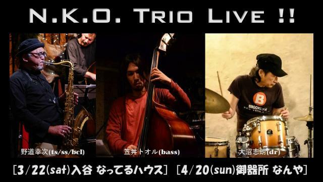 2025年3月22日(土) open 19:00 start 19:30 ¥2,500(予約¥2,300) 野道幸次(sax) 笠井トオル(b) 大沼志朗(ds) TRIO 名古屋の野道さん企画。キレのあるベース笠井さんも名古屋からいらっしゃって大沼さんとのトリオ。久々です!(ヨ)